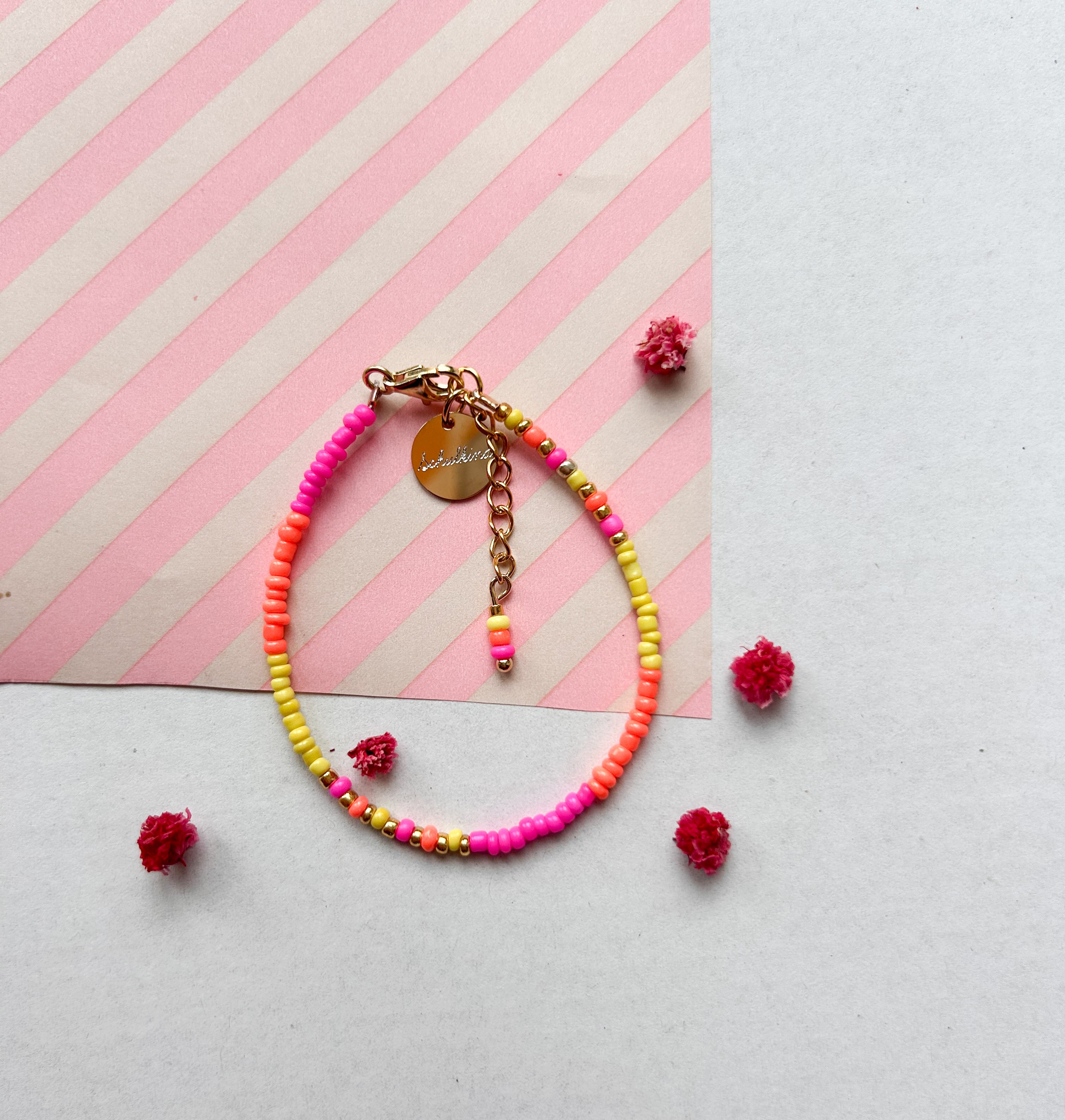Buntes Perlenarmband zur Einschulung oder für andere Anlässe. Länge: 14,00 cm; Material Glasperlen/ 925er Silber & Edelstahl vergoldet.
