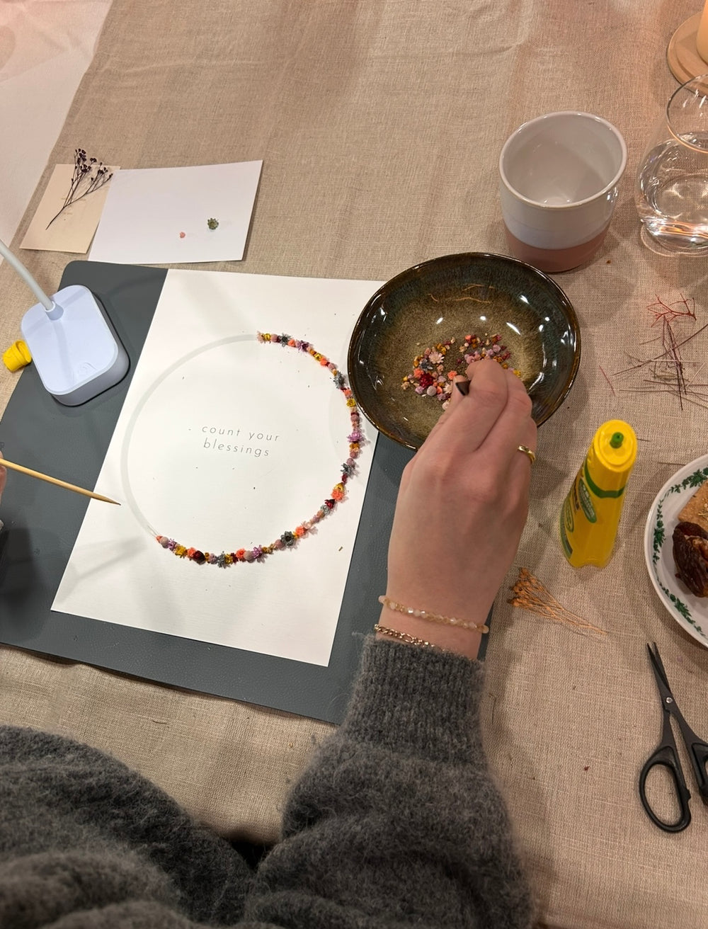 Wenn kein Termin für dich passt oder ihr lieber ganz unter euch bleibt, könnt ihr auch ein privates Event mit mir buchen – ob mit Perlen oder beim Gestalten eines Flowerposters, wir machen es uns gemeinsam richtig schön.